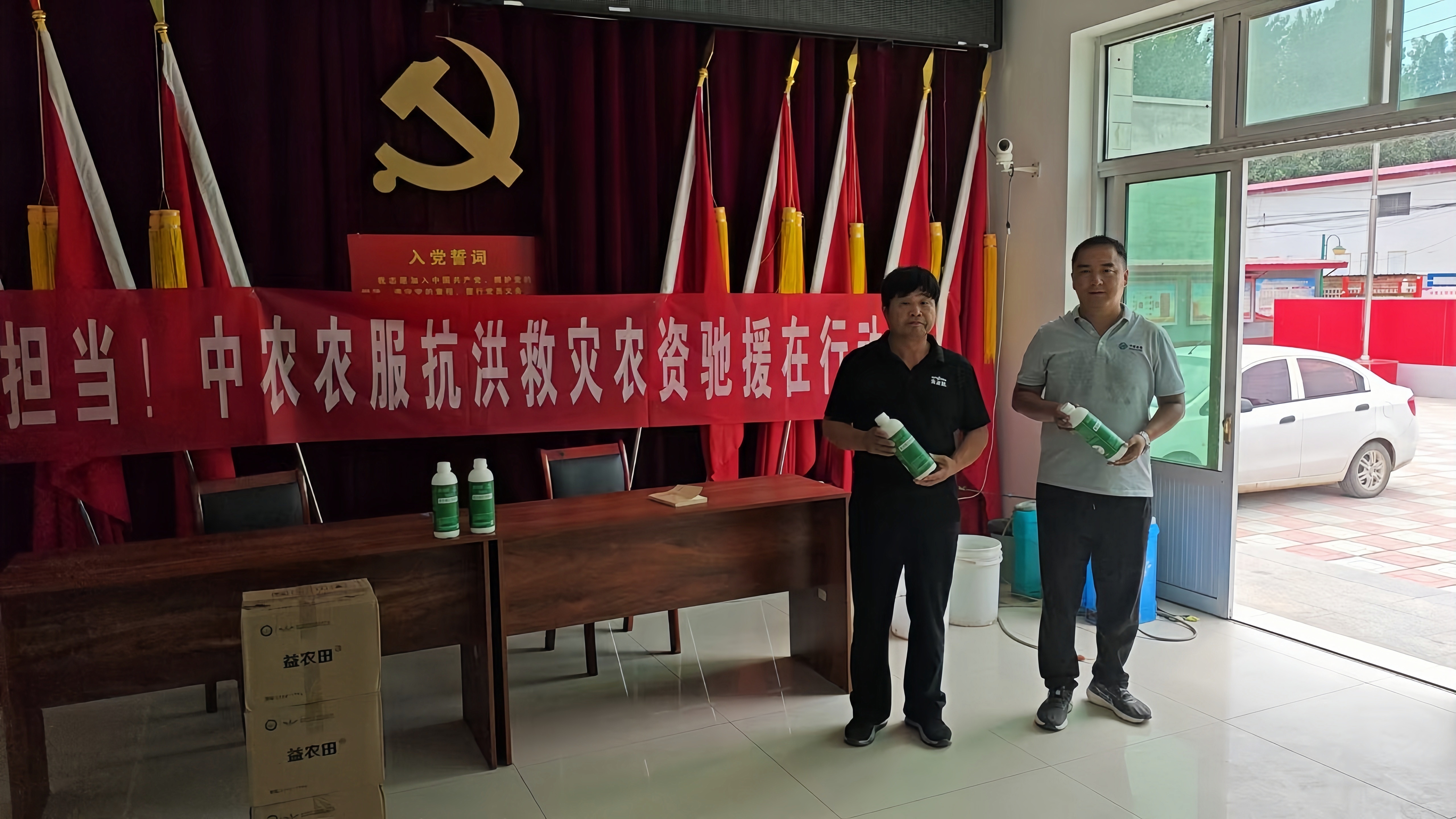 面對洪澇災害,中農集團所屬中農農服公司京津冀團隊迅速行動,在平谷王辛莊鎮、峪口鎮,河北保定定興縣內章一村、西章村、南南蔡村等多個村鎮,為村集體捐贈適合玉米目前所需的葉面肥,同時指導農戶合理用藥,開展技術宣講,幫助農戶減災復產。